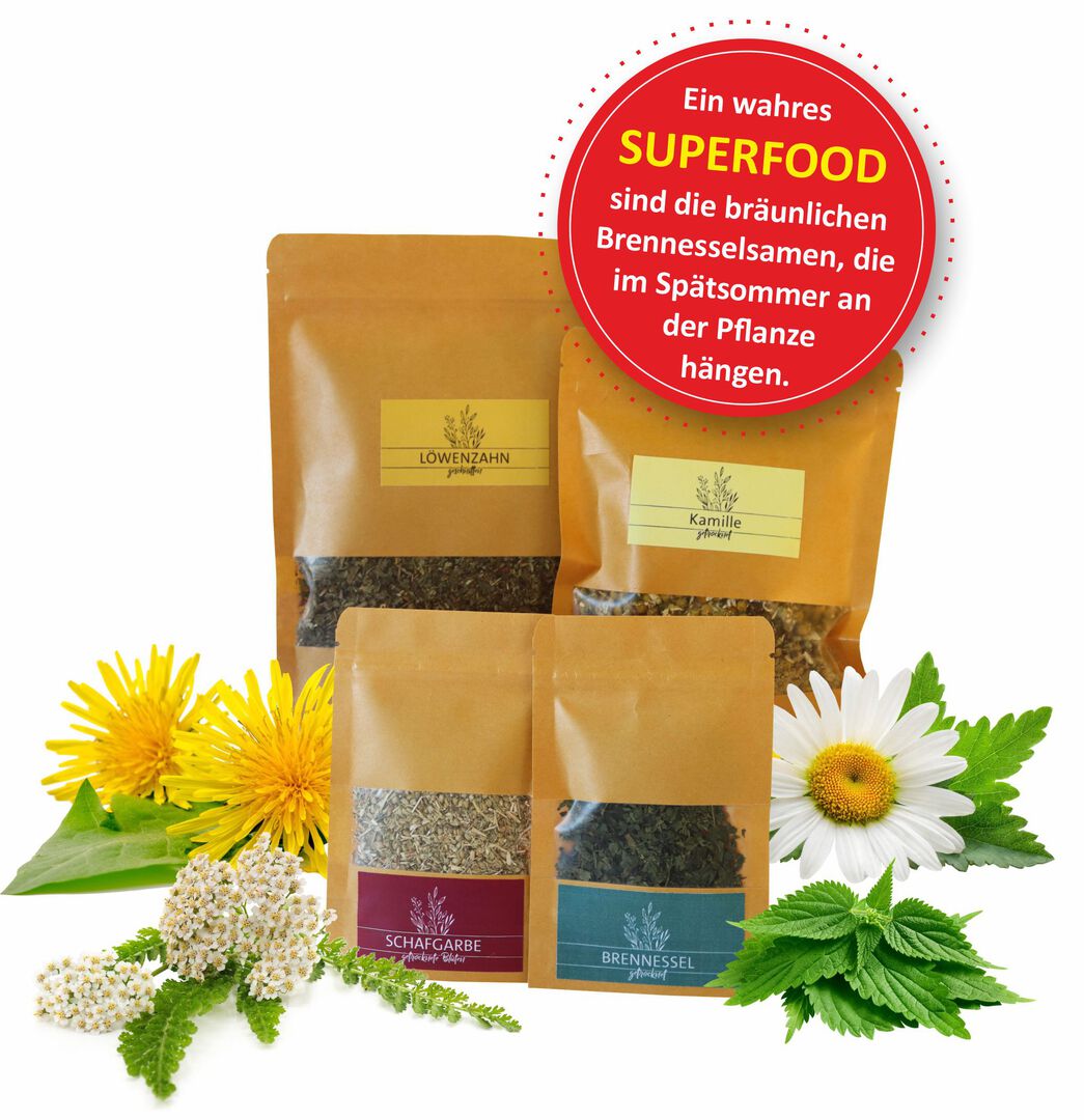 Ein wahres Superfood sind die bräunlichen Brennesselsamen, die im Spätsommer an der Pflanze hängen.