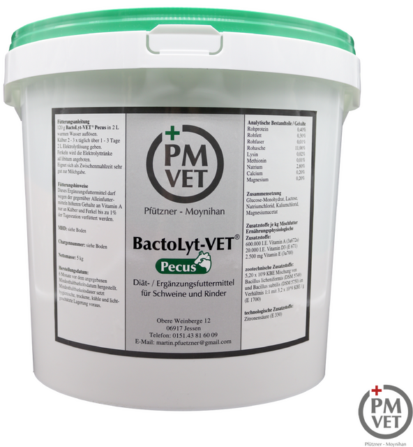 BactoLyt-VET® Pecus besteht aus Elektrolyten die besonders wichtig sind, wenn es zu einem gestörten Haushalt kommt, z.B. durch Durchfall. Zusätzlich enthält BactoLyt-VET® Pecus wertvolle Vitamine, die für eine effektive Immunantwort benötigt werden. Gleichzeitig unterstützen gleich zwei Probiotika, Bacillus subtilis und Bacillus licheniformis, das Mikrobiom. Positive Bakterien sind im direkten Konkurrenzkampf mit den schädlichen Bakterien.