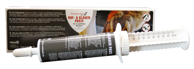 Huf- & Klauenpaste auf Basis von Zinkoxid + Kupfer- und Zinkchelat in Kombination mit organischen Säuren + Teebaumöl. Die speziell entwickelte Pastenform haftet stark, ist einfach an der richtigen Stelle aufzutragen und bietet optimale Pflege und Schutz für Huf und Klaue.